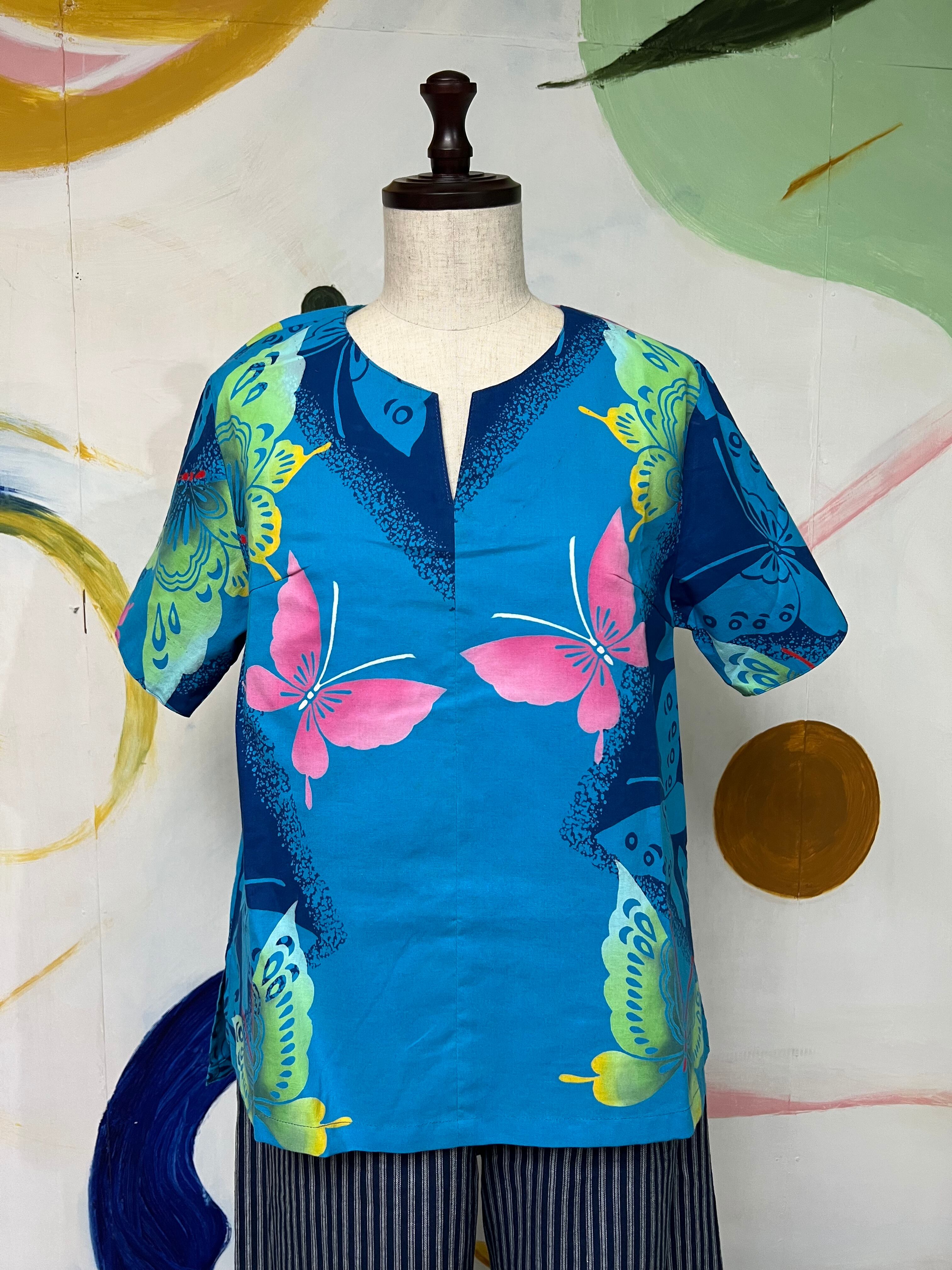 The butterfly pattern has been considered a symbol of immortality, as the butterfly soars from egg, larva, and chrysalis to become a beautiful butterfly. From this fact, it is said that this pattern was used to wish for a long life. There are two shirts of the same type, but please note that the pattern may differ slightly.