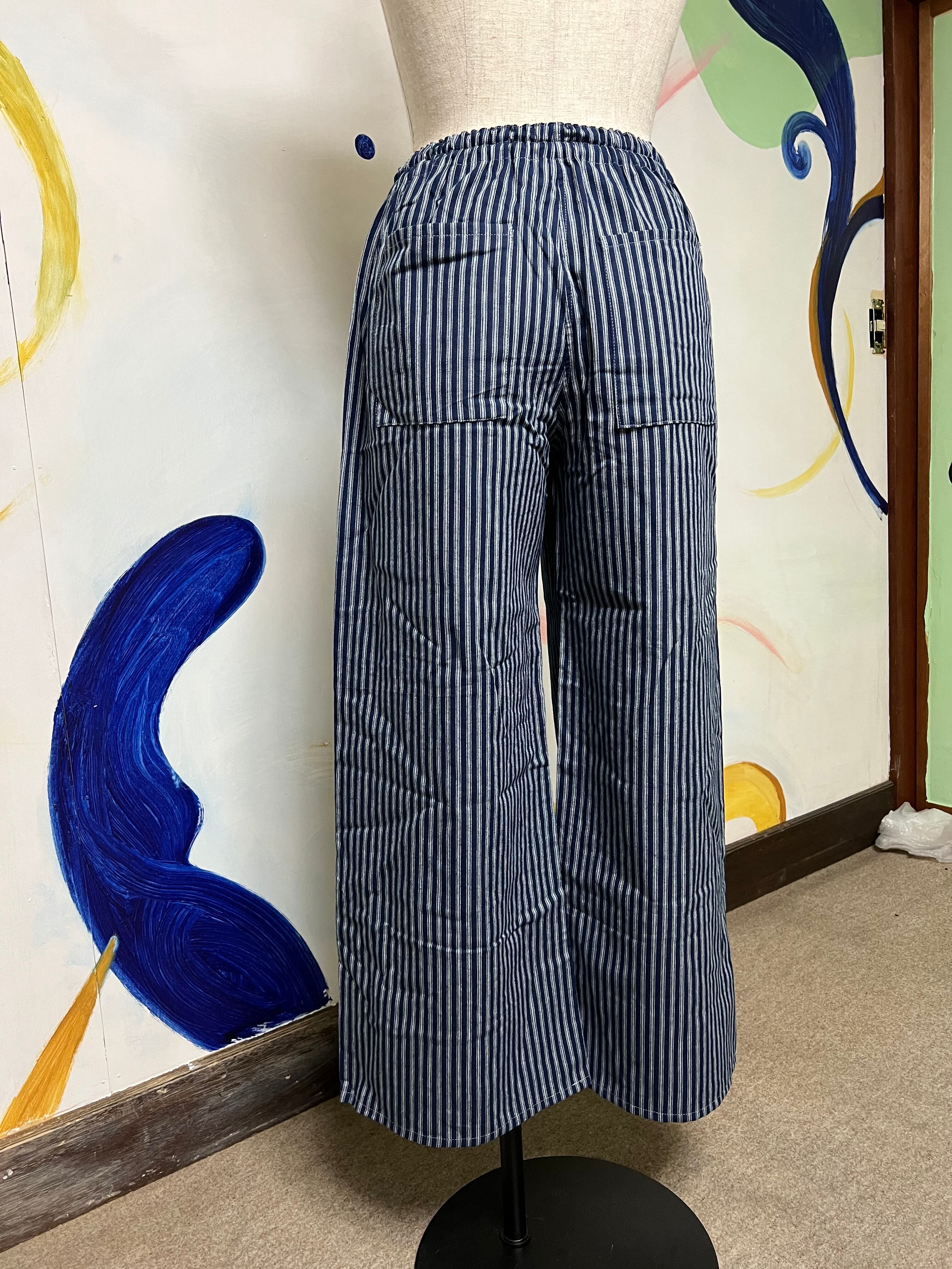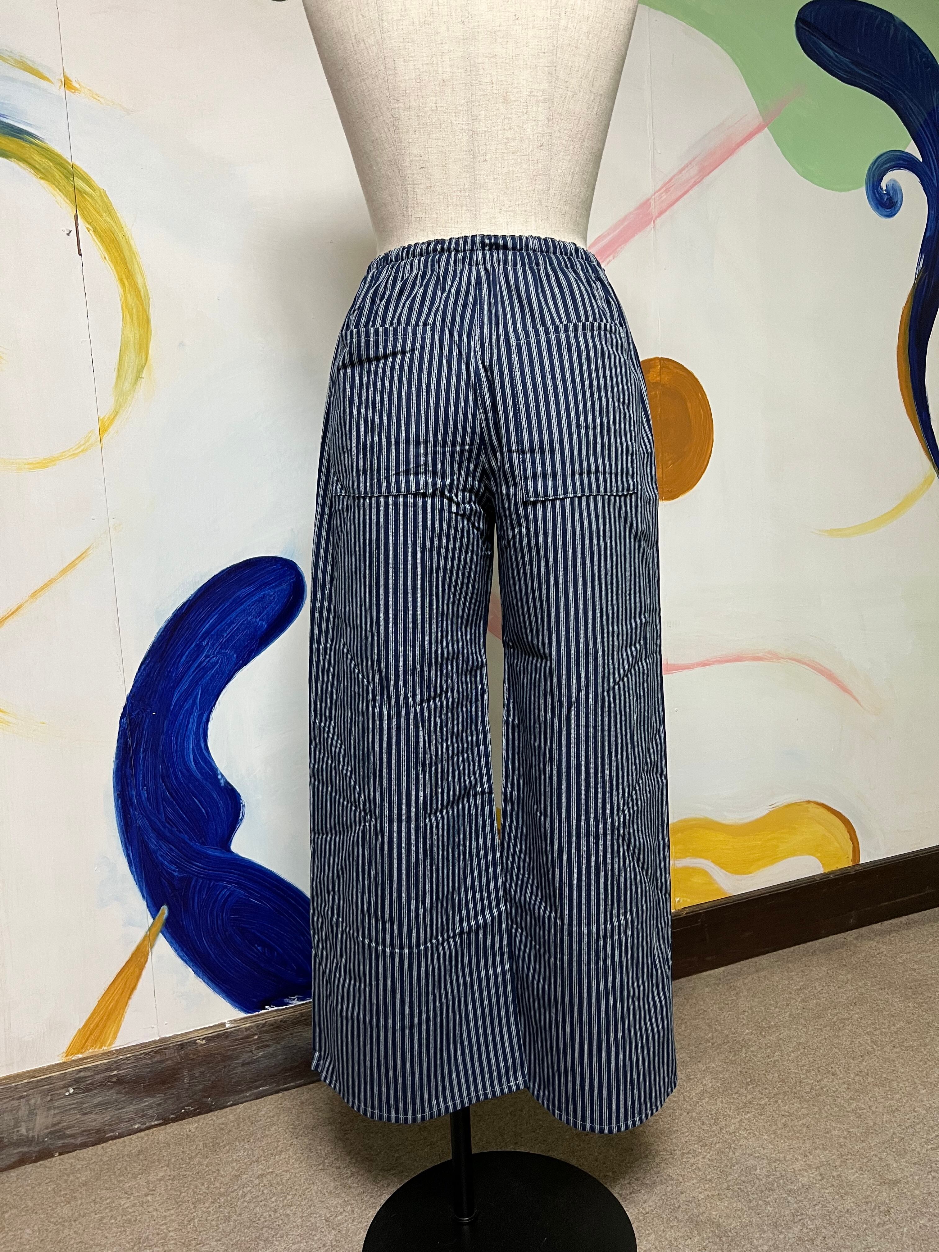 It has a vertical stripe pattern. Made of Japanese textile fabric, cotton.